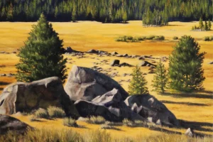 There’s a quiet power in the rugged landscapes of the Sierra Nevadas that has always drawn me in. Sierra Nevadas Meadow – Boulders is a celebration of that strength, the enduring presence of massive granite boulders scattered across a vibrant meadow. Each boulder tells a story of time, erosion, and resilience, contrasting beautifully with the delicate flowers and grasses that surround them.